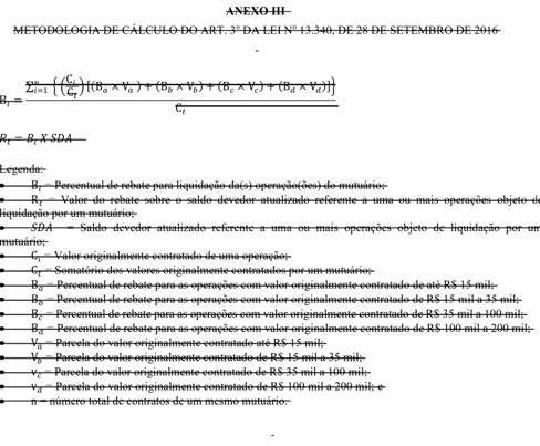 II - o cálculo do percentual de rebate para liquidação ou de bônus para repactuação das operações de cada mutuário será apurado com base no somatório do valor originalmente contratado de todas as suas operações passíveis de enquadramento, independentemente do número de contratos, conforme as metodologias indicadas nos Anexo I , Anexo II e Anexo III ;