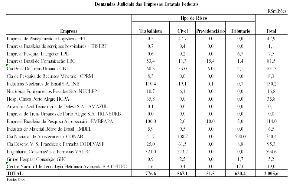 Com o objetivo de prover maior transparência na apuração dos resultados fiscais, este Anexo de Riscos Fiscais examinou os passivos contingentes e outros riscos capazes de afetar as contas públicas e a elaboração do orçamento. Espera-se, com isto, colaborar para aperfeiçoar o planejamento fiscal e dar suporte aos diagnósticos e às ações necessárias para o crescimento econômico.