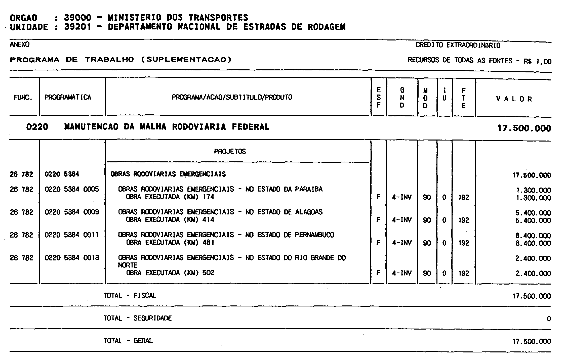 programações constantes do Anexo desta Medida Provisória.