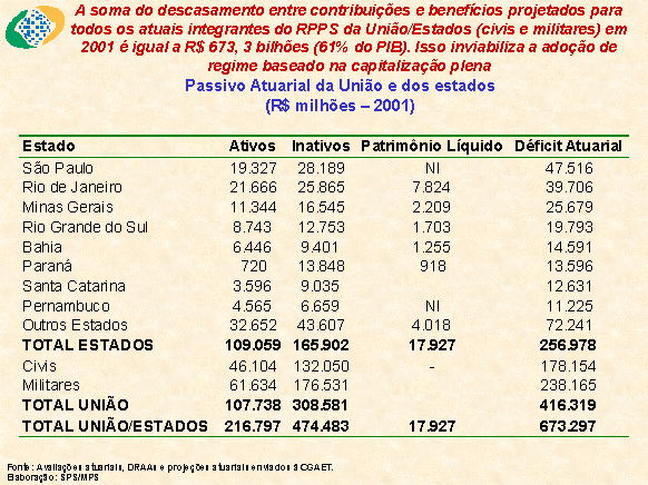 próprios de Previdência Social dos servidores, com desequilíbrios nas dimensões