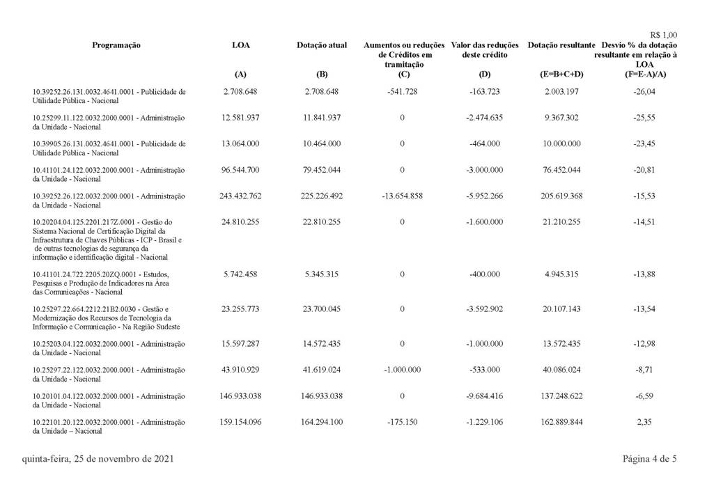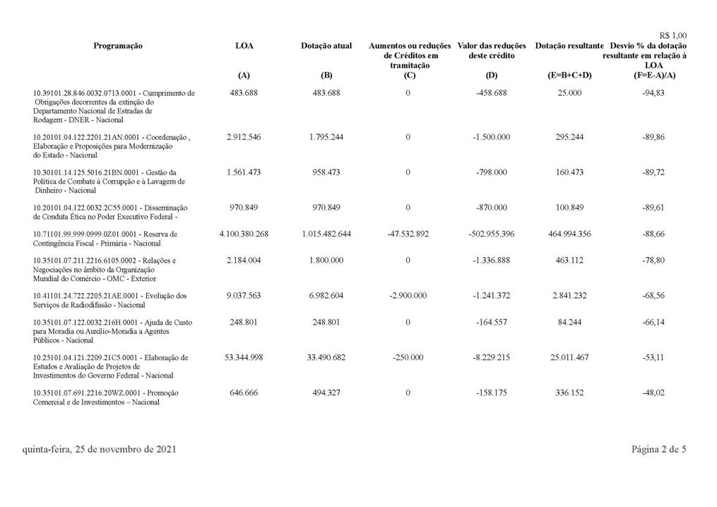 QUADRO ANEXO À EXPOSIÇÃO DE MOTIVOS DO MINISTÉRIO DA ECONOMIA No 345, DE 29/11/2021