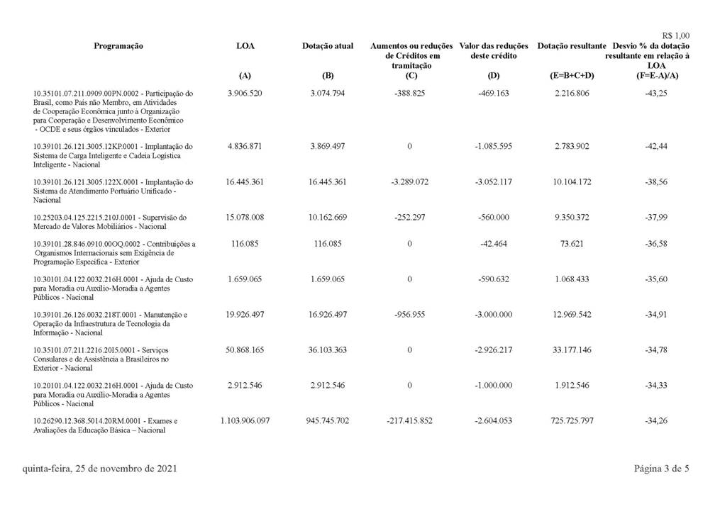 10. Ressalte-se, por oportuno, que a alteração em comento decorre de solicitações formalizadas por meio do Sistema Integrado de Planejamento e Orçamento – SIOP, e as programações objeto de cancelamento não sofrerão prejuízos na sua execução, uma vez que os remanejamentos foram decididos com base em projeções de suas possibilidades de dispêndio até o final do exercício.
