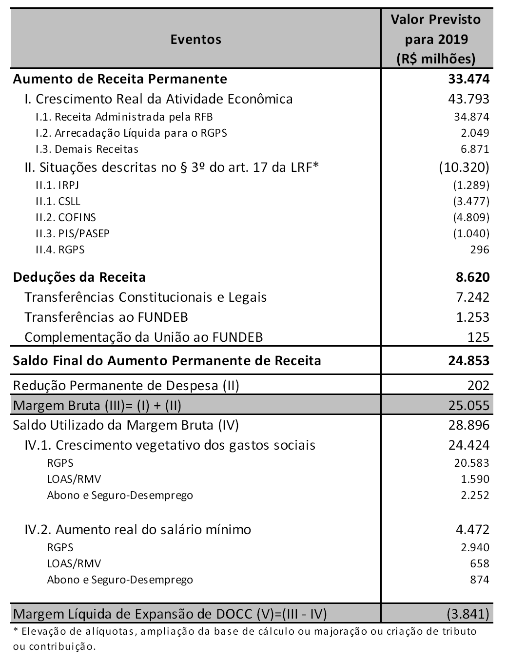 1 – Valor do Salário Mínimo para 2019 estimado na Grade de Parâmetro de 12 de março de 2018.