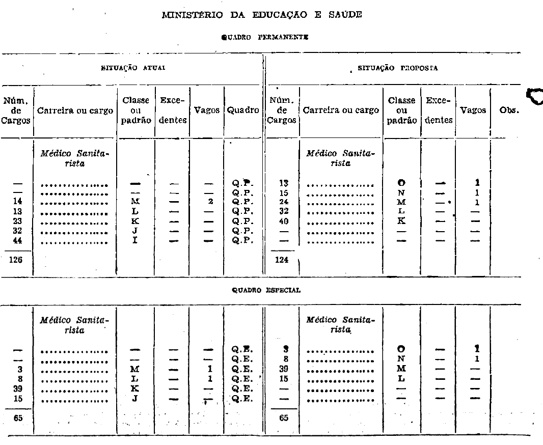 Art. 1º Ficam alteradas, na forma, das tabelas anexas, as carreiras de Médico Sanitarista dos Quadros Permanente e Especial do Ministério da Educação e Saúde.