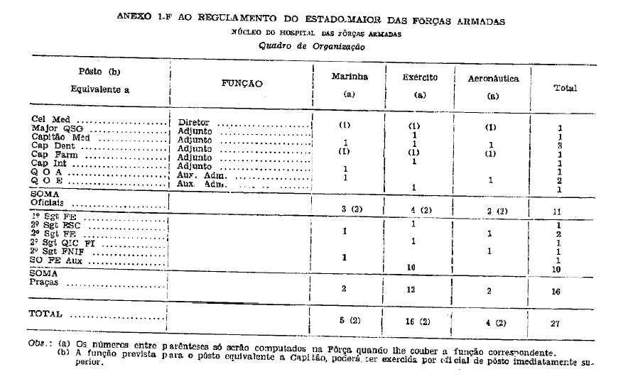 1.310, de 8 de agôsto de 1962, criou o Hospital das Fôrças Armadas, subordinado