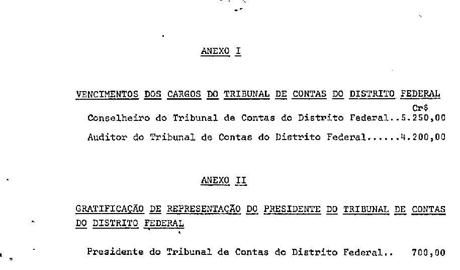 Art. 1º Os vencimentos dos membros do Tribunal de Contas do Distrito Federal são fixados no Anexo I desta Lei. (Vigência)