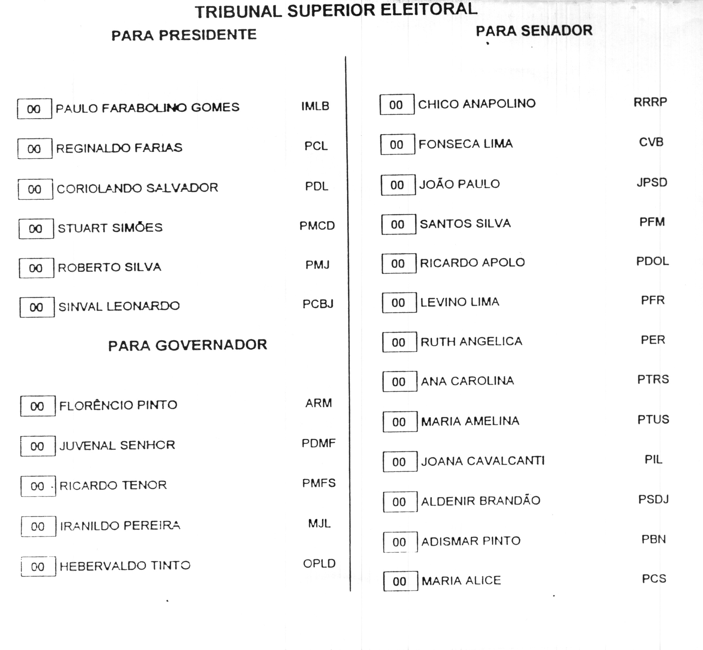 I - a primeira, ordenada por partidos, terá a relação dos respectivos candidatos em ordem numérica com as duas variações de nome correspondentes a cada um, na ordem escolhida pelo candidato;