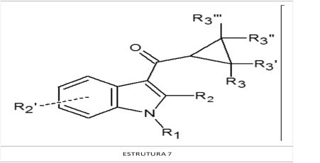 1. Qualquer substância que apresente uma estrutura ciclopropil(1H-indol-3-il)metanona (estrutura 7):