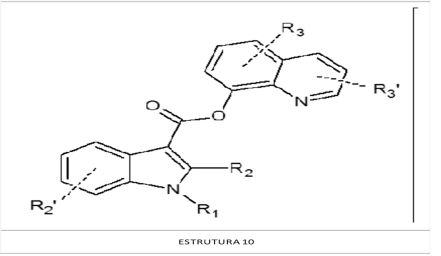 1. Qualquer substância que apresente uma estrutura quinolin-8-il(1H-indol-3-il)carboxilato (estrutura 10):
