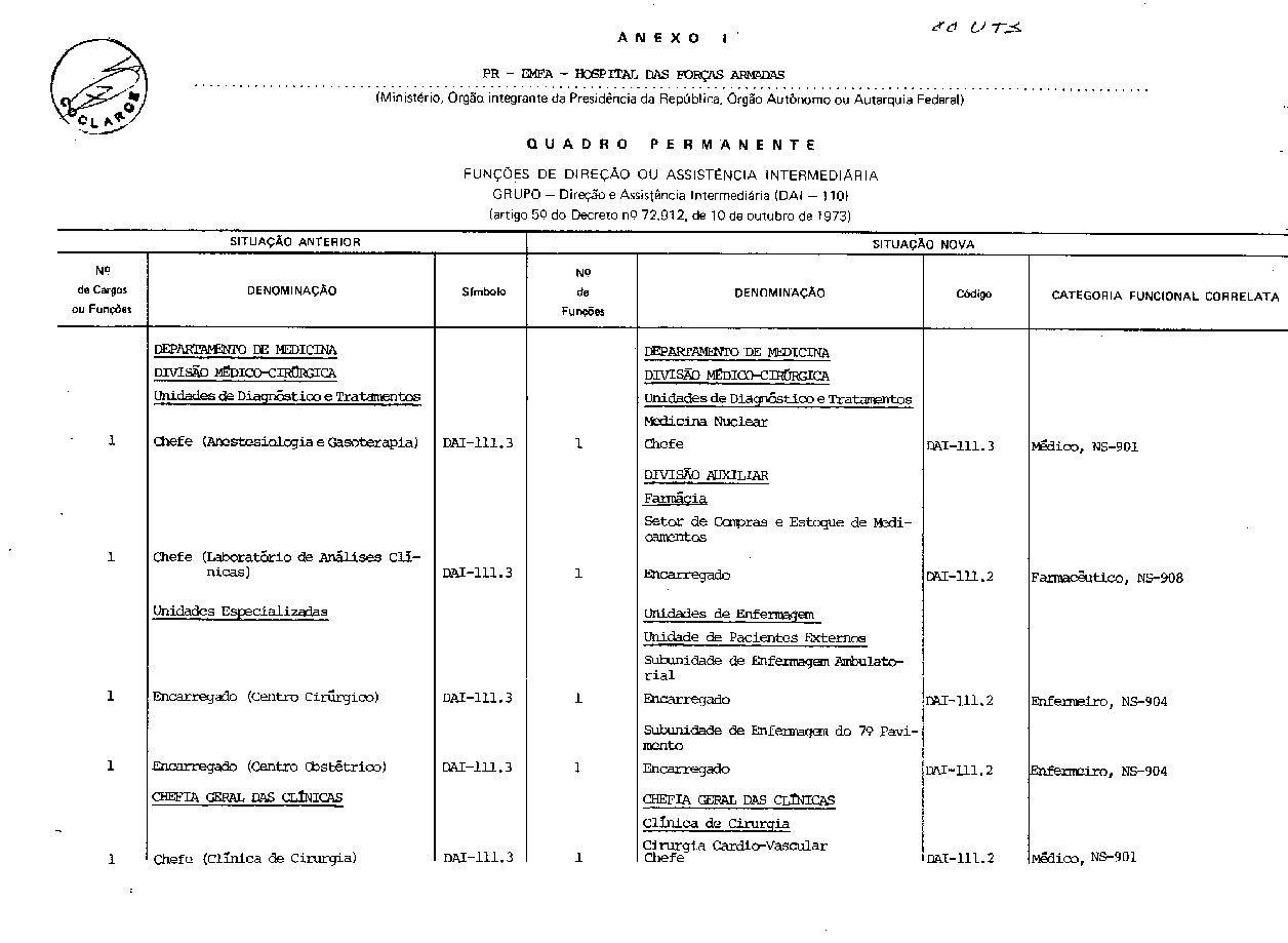 Art . 1º- São transformadas e criadas funções, na forma do Anexo I deste decreto, para composição da Categoria Direção Intermediária, código: DAI-111, do Grupo-Direção e Assistência Intermediárias, código: DAI-110, do Quadro Permanente do Hospital das Forças Armadas.