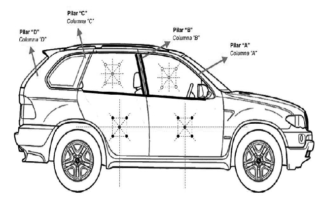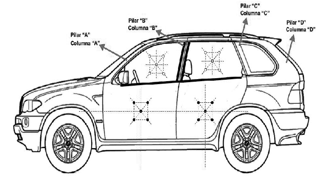 b.2) Aplicação de aço inoxidável balístico moldado conforme a carroceria do veículo, sendo instalados nas colunas A, B, C e D, longarina e travessas do teto.