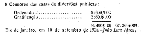 Rio de Janeiro, em 10 de setembro de 1924, 103º da lndependência e 36º de Republica. — João Luiz Alves.
