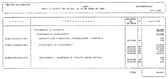 Planejamento, o crédito suplementar de CZ$ 86.440.000,00 (oitenta e seis milhões