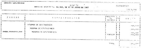 Departamento Nacional de Águas e Energia Elétrica - DNAEE, o crédito suplementar