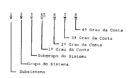4 - No plano, a conta está formada por uma parte numérica (código) e outra alfabética (título), não podendo ser alterada pelo Concessionário. A parte numérica (código) é formada pelo conjunto de oito (8) dígitos, com o seguinte valor de posição: