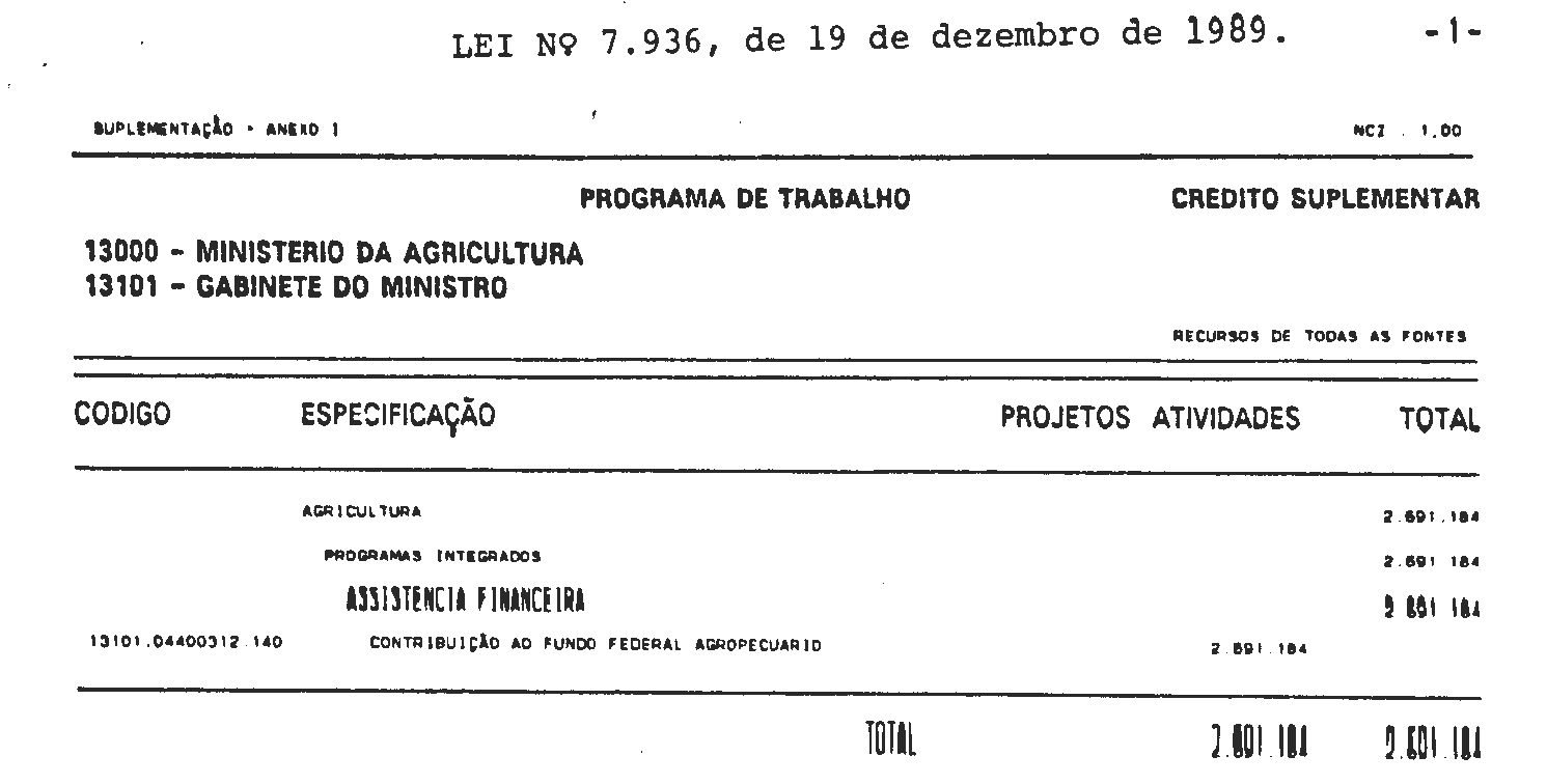 LEI No 7.936, DE 19 DE DEZEMBRO DE 1989.