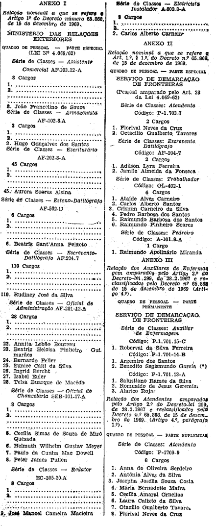 DECRETO No 65.868, DE 15 DE DEZEMBRO DE 1969.