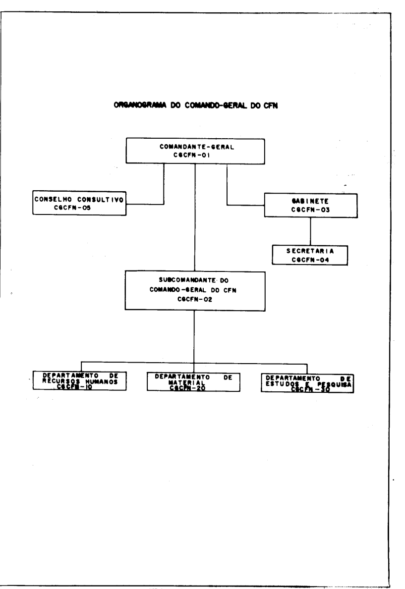 Art . 6º-O CGCFN é chefiado por um Comandante-Geral (CGCFN-01), auxiliado por um Subcomandante do Comando-Geral do CFN (CGCFN-02), e compreende três (3) Departamentos, a saber: