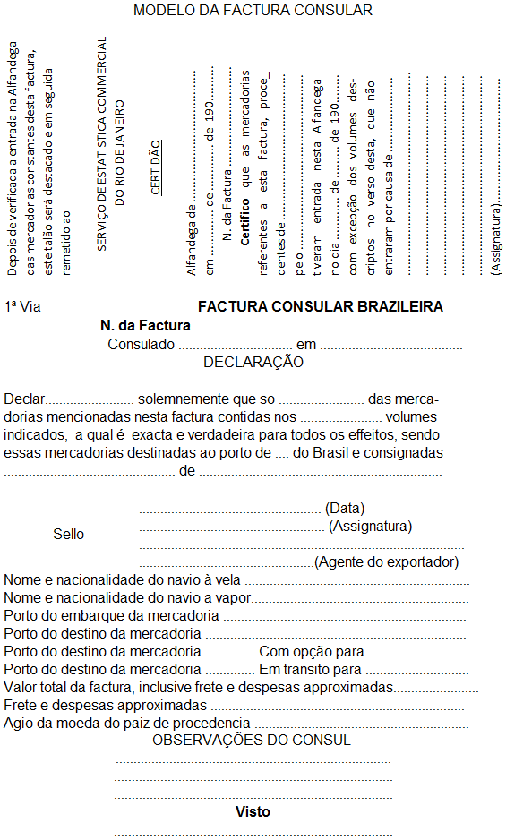 Nessas mencionadas terceiras vias de despacho a Alfandega destinataria lançará o numero e o Consulado da factura consular que lhes corresponder.