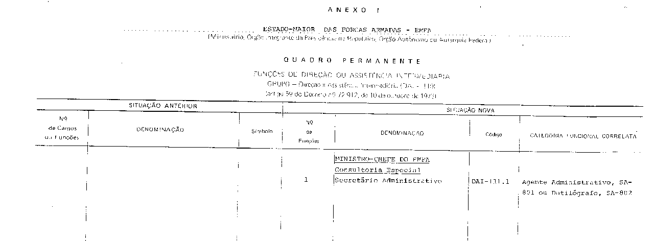 Art . 1º, Fica criada uma função, na forma do Anexo I deste decreto, para composição da Categoria Direção Intermediária, código DAI-111, do Grupo-Direção e Assistência Intermediárias, código: DAI-110, do Quadro Permanente do Estado-Maior das Forças Armadas - EMFA.